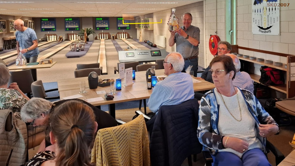 Zoals gebruikelijk was er ook na deze sessie een verloting met leuke/lekkere prijzen. Opvallend was dat zowel bij De Boggelaar als bij Alinghoek de lootjestrekkende kegelaar een clubgenoot aan een prijs hielp.