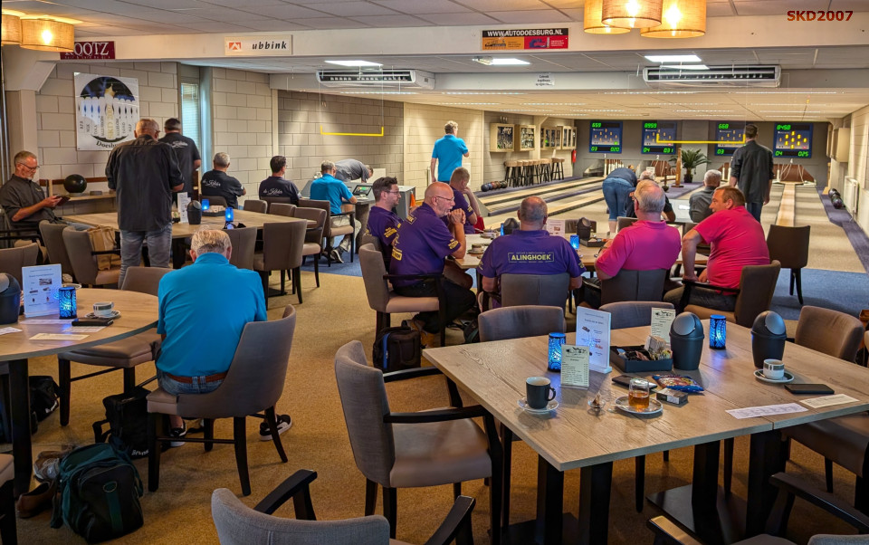 We begonnen niet allemaal even sterk met de 1e baan. Hier gooien de hoogste drie een totaal van 365.