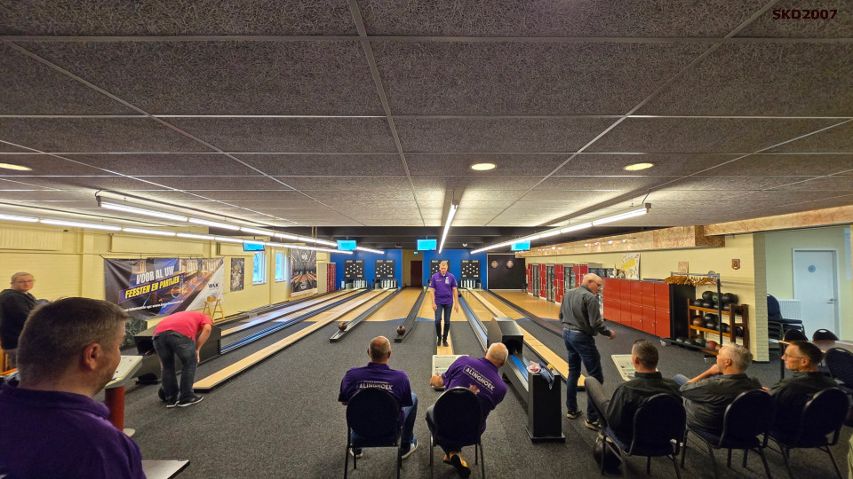 Begonnen werd op baan 3. Sanne 118, Tonny 124, Davey 127. Gerard viel met 112 af.