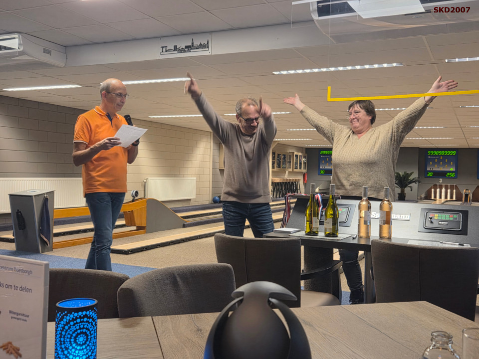 De gebroeders John en Peter van der Meulen startten enorm sterk maar lieten op de laatste 2 banen toch wat hout liggen waardoor het duo Davey Kuijn en Sanne Zenhorst met een sneltreinvaart er op en er over gingen.