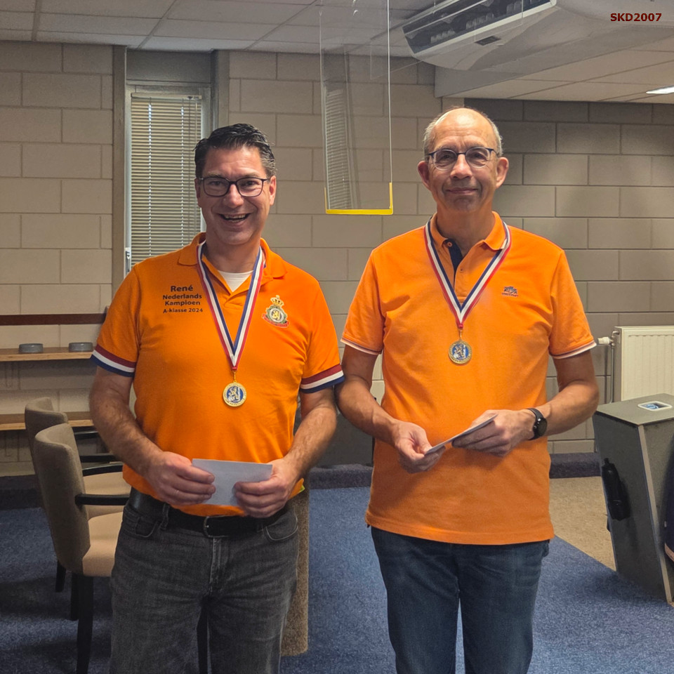 Op de laatste baan 4 gooide de ontketende Erik-Paul zijn 2e 135 van de middag en stelde hij en René de titel veilig.