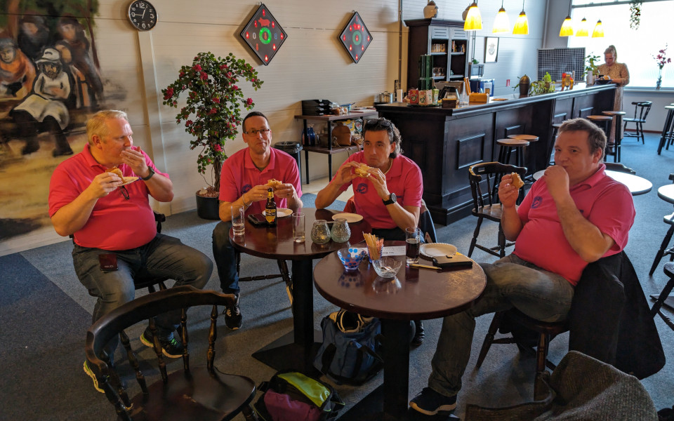 Chauffeur Davey bracht zijn teamgenoten Sanne, Tonny en Erik-Paul veilig naar Heumen.