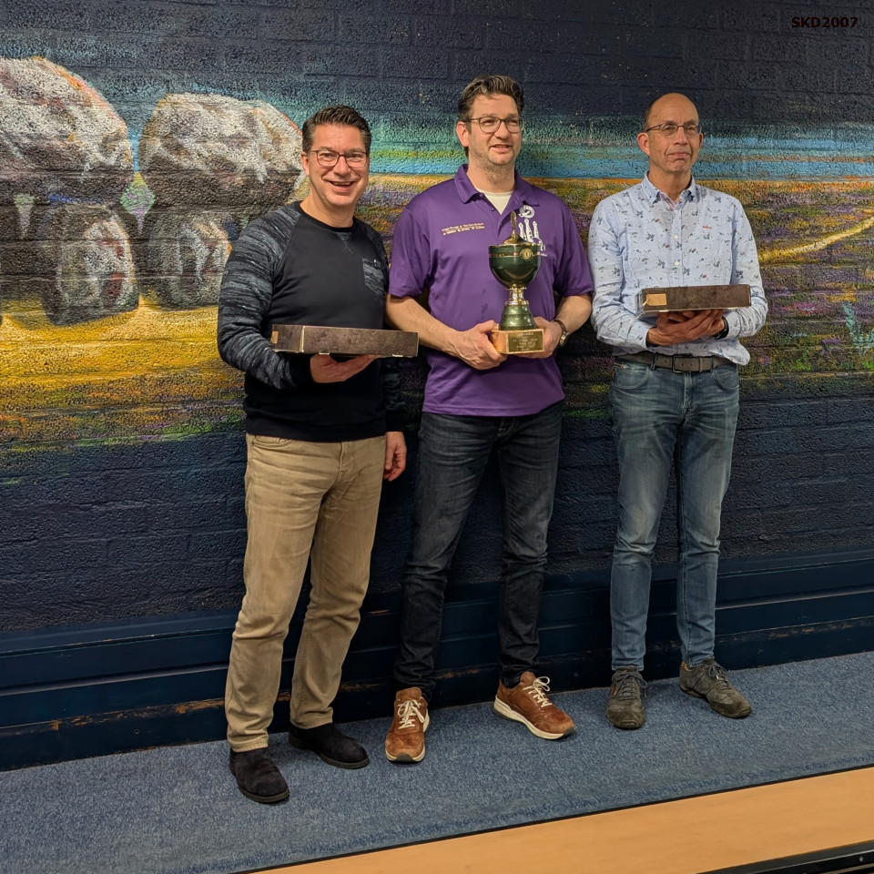 Bij de Heren B koerste Bennie Aalderink - net als in de voorronde - af op een gedegen tweede plaats, achter Peter van der Meulen van Alinghoek. Hij maakte het in de laatste ronde nog wel iets te spannend door het gooien van twee poedels, maar de resultaten van de voorgaande banen waren zo goed dat hij tweede bleef.