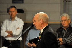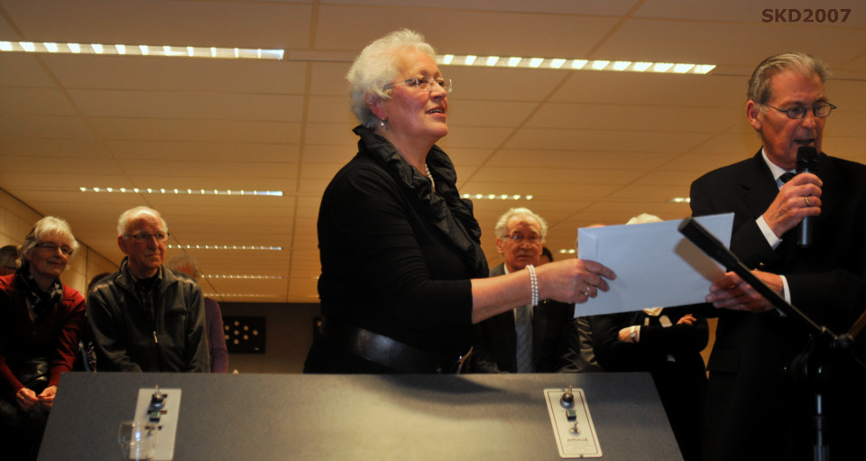 Nadat er wat ruimte was gemaakt door het verplaatsen van de tafels was het tijd voor toespraken van genodigden: de Rabobank verraste met een financiële bijdrage; de voorzitster van de OGK Lies Claessen, de voorzitter van KNKB Joop Brouwer en wethouder Fred Jansen.